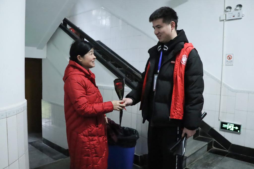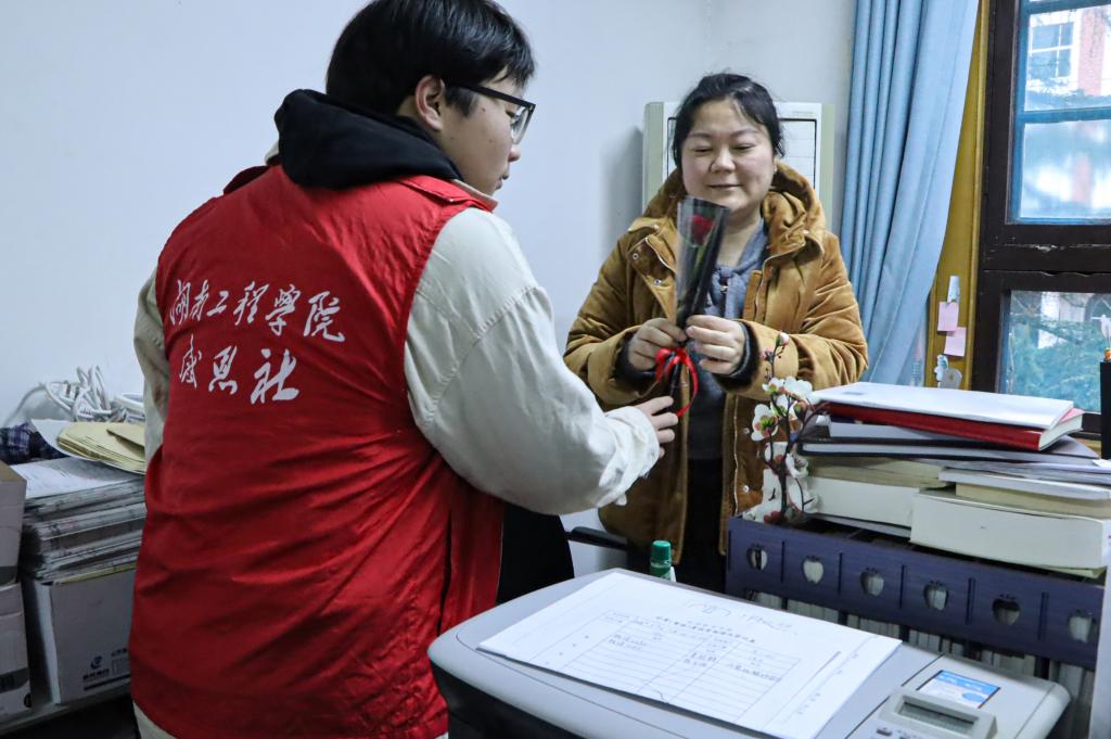 3月7日,为庆祝第115个“三八”国际妇女节,威廉希尔官网青年志愿者协会组织了一场献花活动,向女性教职工们表达敬意,传递温馨祝福。