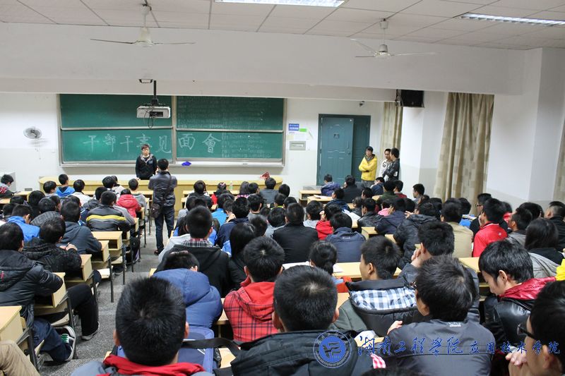 11月22日下午,南校区换届后的学生干部干事召开见面会。辅导员王尔奇老师,学生会副主席胡东,感恩社副社长游鹏琪,新闻通讯社副社长王日新及各部部长及干事出席本会。会议由办公室副主任李超主持。