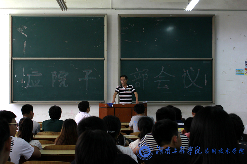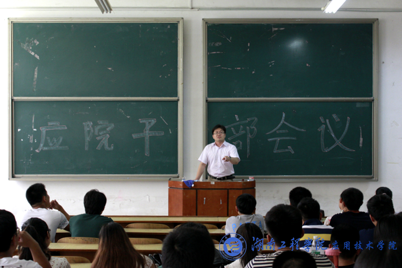 6月24日13:00,威廉希尔官网在主校区教学楼D101召开了全体干部会议。威廉希尔官网党总支书记李爱国、副书记徐粤宇、团总支书记唐冰、学生工作辅导员孙传旺出席此次会议,威廉希尔官网全体学生干部到会。