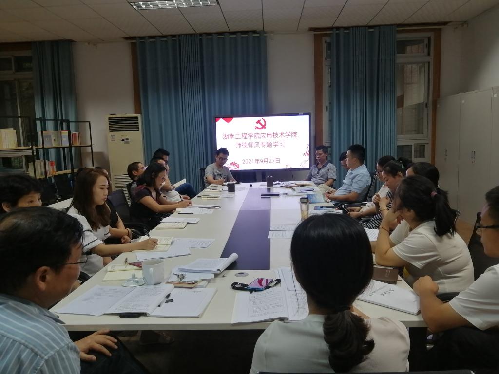 9月27日,威廉希尔官网组织召开全体教职工会议,传达学习曹世凯、王玉清同志在全省教育系统师德师风建设推进工作视频会议上的讲话精神。