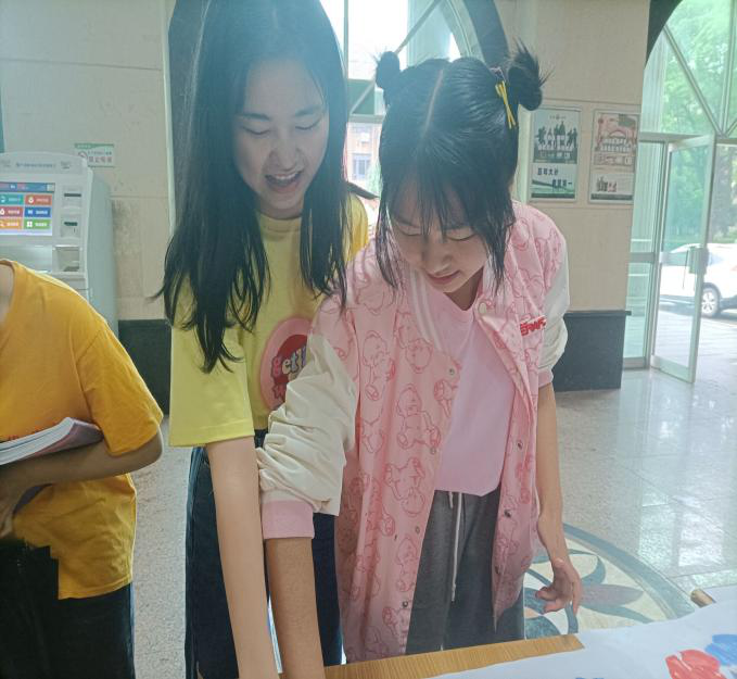 “来来来,一二三......”用你我的手印见证此刻的快乐,用美丽的色彩去迎接夏天的到来。同学们们结伴而来和朋友蘸色印下彩色手印,参与的同学脸上都洋溢着笑容,现场一片欢声笑语,气氛热烈快乐。