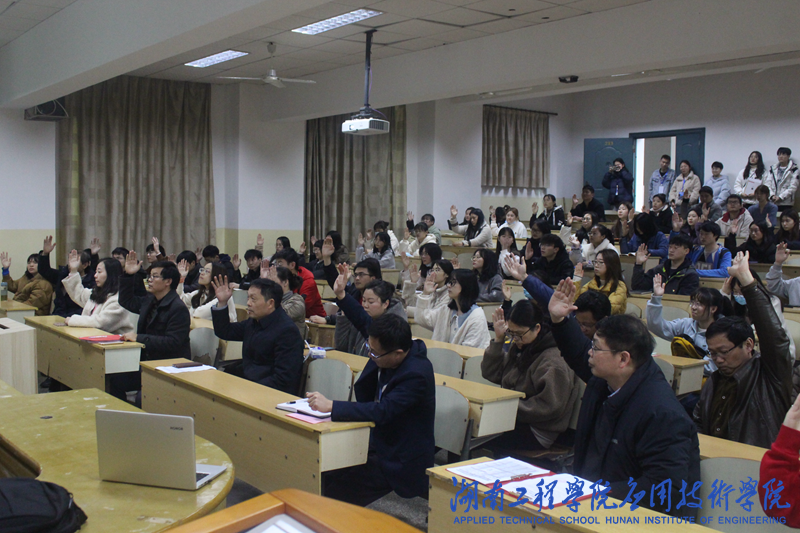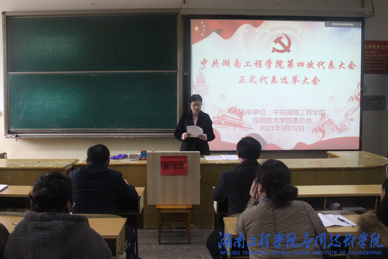 3月12日中午12:30,威廉希尔官网在南校区第一教学楼213教室召开全体党员大会,选举产生出席中国共产党湖南工程威廉希尔官网第四次代表大会代表。大会应到正式党员126名,实到正式党员116名,实到会正式党员人数超过应到会正式党员人数的五分之四,符合选举规定。