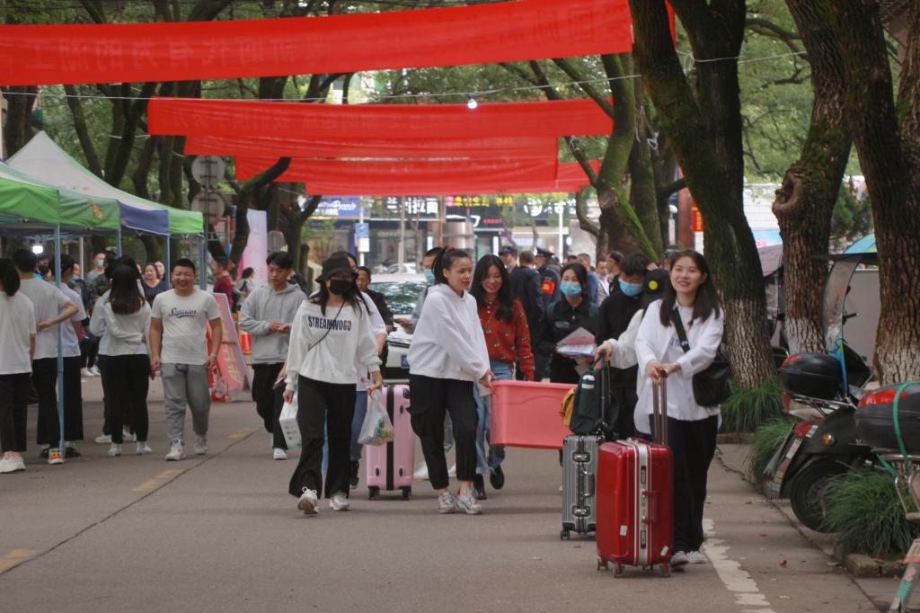 新生报到工作安排严格遵守疫情防控要求,新生经行李消毒、测量体温、身份确认、扫健康码、行程码等环节后方可到迎新点报到、办理入学手续。迎新现场还设有体温复测、应急处置点、临时隔离点,以备突发事件应急处置。