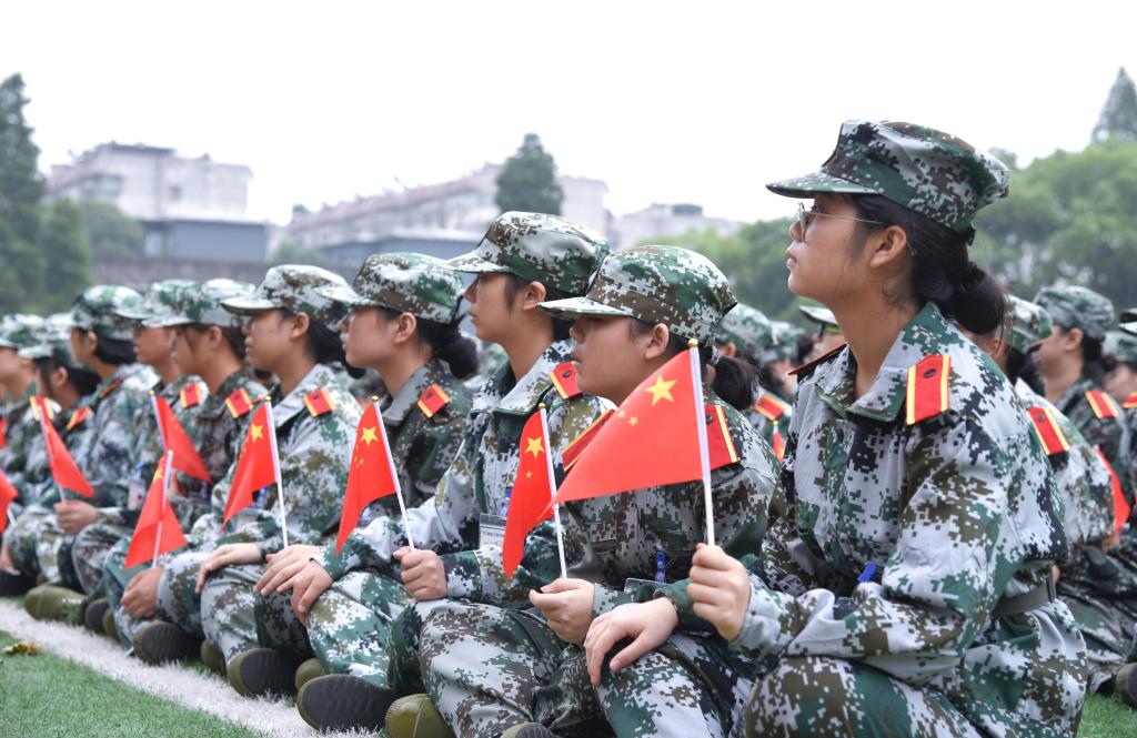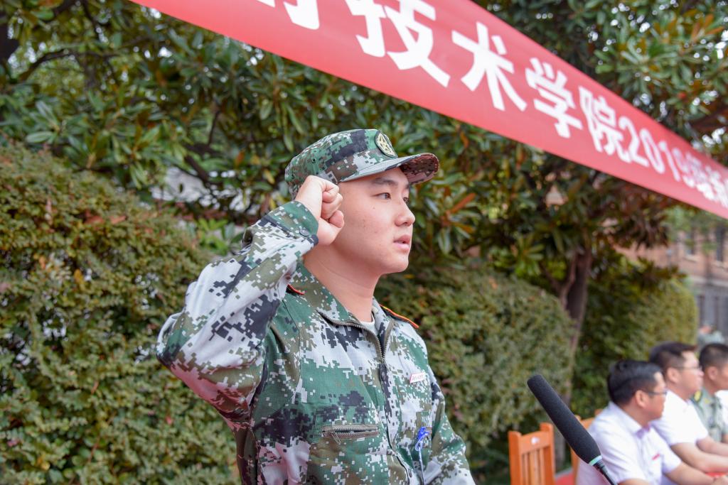 随后成平下达2019年新生军训任务。军训团教官代表贾小龙发言,作为教官会以身作则,树立良好形象;加强沟通,了解学员思想情况;科学施训,树立服务意识,确保军训任务的高标准、高质量完成。参训新生代表、会计学1981班廖垠同学发言,表示新生们要充分认识军训的重要意义,用高标准、严要求规范自己,不怕困难,刻苦训练,服从命令,听从指挥,圆满完成军训任务。最后,易兵为军训团授旗。成平郑重地从易兵手中接过军训团团旗。