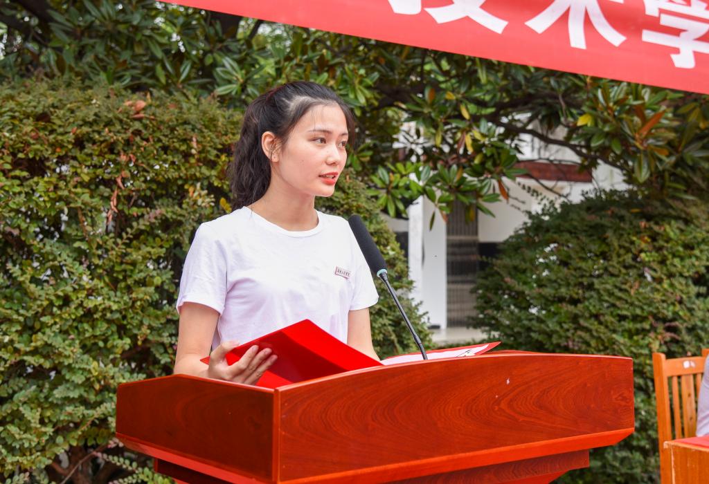 班主任周舟妤栎代表教师发言,希望同学们在大学里要立学、立行、立志,用青春的激情和智慧,点燃心中的理想,脚踏实地,刻苦努力,书写人生精彩的一页。