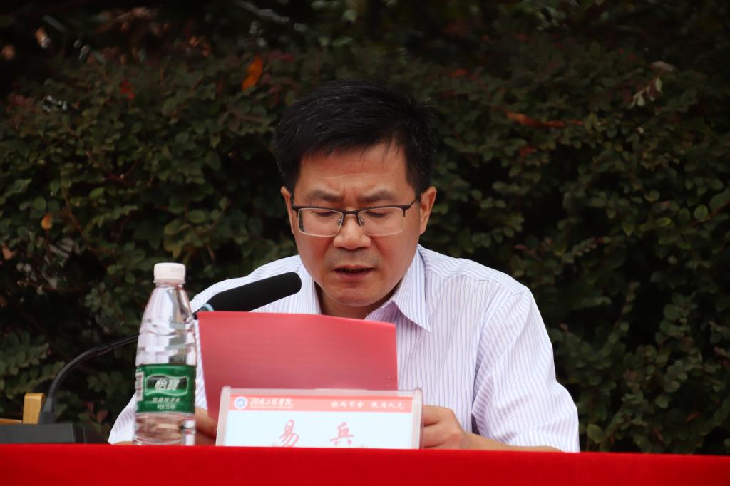 易兵发表讲话。他代表威廉希尔官网欢迎2019级新生们的到来,带领同学们回顾了湖南工程威廉希尔官网近年来取得的成绩,希望新同学接好接力棒,做湖工历史的见证者和续写者,同时书写好属于自己的篇章。