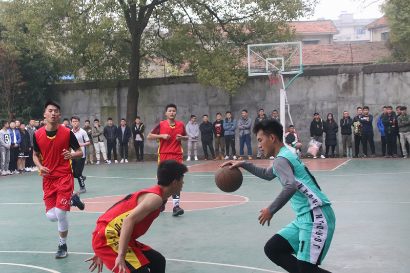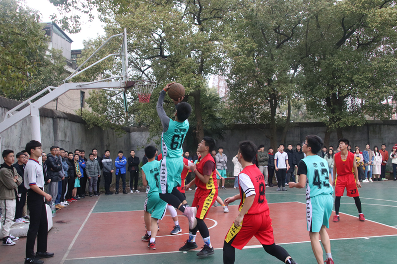比赛分两组同时进行,土木工程1882班篮球队(绿队)和18级电子信息工程1881班篮球队(红队)角逐冠军,土木1883班篮球队与18级会计篮球代表队争夺季军。