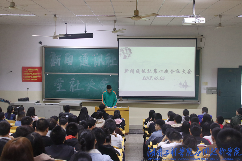 10月25日中午12:30,威廉希尔官网新闻通讯社在第一教学楼313召开本学期第一次全社大会。新闻通讯社社长汤帅,副社长刘思婷、廖章会,以及各部门部长和新闻通讯社全体干事参加此次会议。由办公室谷沐霖担任此次会议主持人。