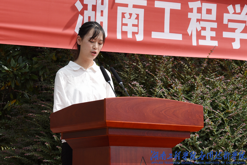 金融工程1881班江睿同学代表新生发言,短短几天的入学经历让她对大学充满期待,激励新生们在四年时光里要勇敢逐梦,博学笃志,发奋图强,让青春无悔。
