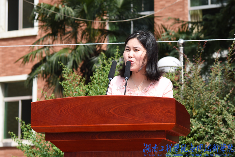 辅导员蒋蕙筠代表教师发言,告诫同学们要珍惜大学时光,做爱学习的应院人;提高个人修养,做有德行的应院人;勇担时代使命,做有情怀的应院人。