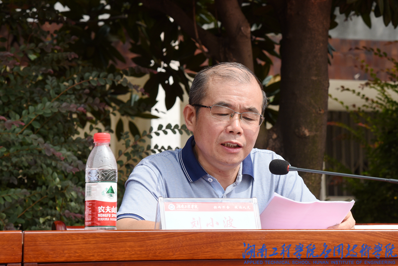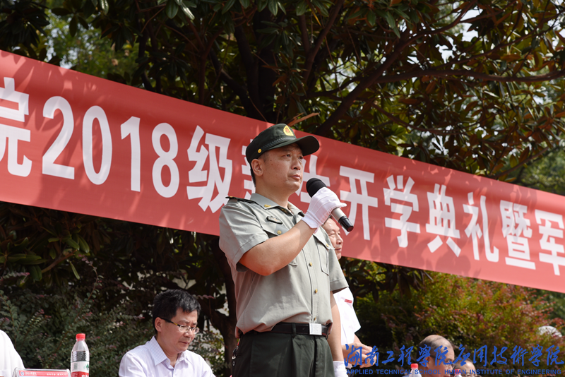 副校长刘小波教授作新生军训动员报告。他指出军训是大学第一课,要通过军训来磨练品德意志,强健体魄,增强国防观念,掌握军事技能,希望同学们发挥军人的优良传统,严格要求自己,以良好的精神风貌完成军事训练任务。