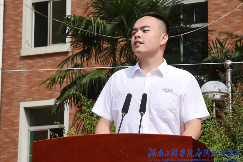 人力资源1581班李子健同学作为在校生代表发言,他分享了自己的大学经历,大学是逐梦之旅,新生要心怀梦想,满怀信心地拥抱大学生活;要脚踏实地,努力奋斗,让梦想绽放。