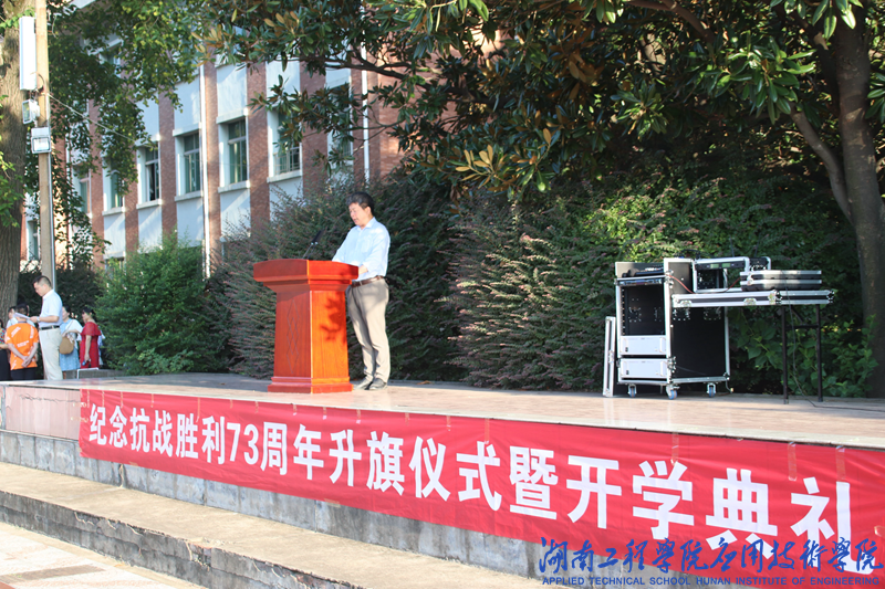 9月3日早上7:30,威廉希尔官网于南院田径场举行“纪念中国人民抗日战争胜利73周年”升旗仪式暨开学典礼。威廉希尔官网党总支书记李爱国、党总支副书记徐粤宇,学办全体辅导员、班主任老师及全院3000余学生参加仪式。