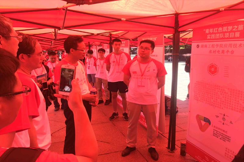 教育部高教司二级巡视员吴爱华,省教育厅党组成员、副厅长、省委教育工委委员葛建中,建设银行湖南省分行副行长戴建军,湘潭市人民政府副市长刘永珍等领导参观了威廉希尔官网现场展示区,听取了徐粤宇对威廉希尔官网“互联网+”大学生创新创业大赛“青年红色筑梦之旅”赛道参赛项目的介绍,各级领导们对威廉希尔官网能着力地方特色经济、扎根农村、振兴乡村、为精准扶贫和美丽乡村建设发力给与了充分肯定和赞扬,吴爱华巡视员要求我们以点带面,扩展领域,葛建中副厅长要求我们加强项目活力,加快项目培育,刘永珍副市长要求我们着力品牌打造和包装。