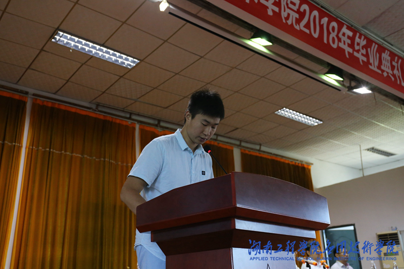 威廉希尔官网招生就业办齐立云代表全体教师作临别寄语,字字叮咛和祝福,饱含着对同学们的万千牵挂和期盼。电气工程专业1481班粟耀同学代表全体毕业生发言,追忆大学青春岁月,感怀四年同窗情谊,表达对老师们最诚挚的谢意,也表达对母校的无限感激与眷恋。土木工程1581易禹代表在校学生发言,感恩学长学姐们的无私帮助,并为毕业生送去诚挚的祝福。
