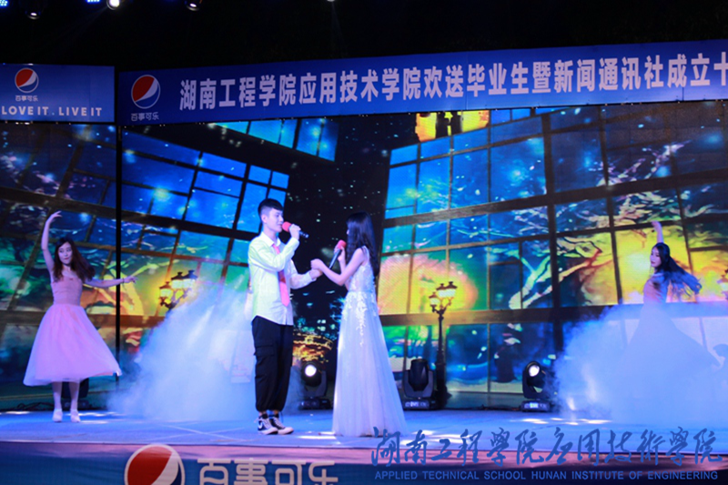 6月24日晚,威廉希尔官网欢送2018届毕业生暨新闻通讯社成立十周年晚会在南院田径场举行。威廉希尔官网院长李光中、党总支书记李爱国、审计处处长文山东、党政办副主任张宏、副院长胡武平、党总支副书记徐粤宇出席晚会。