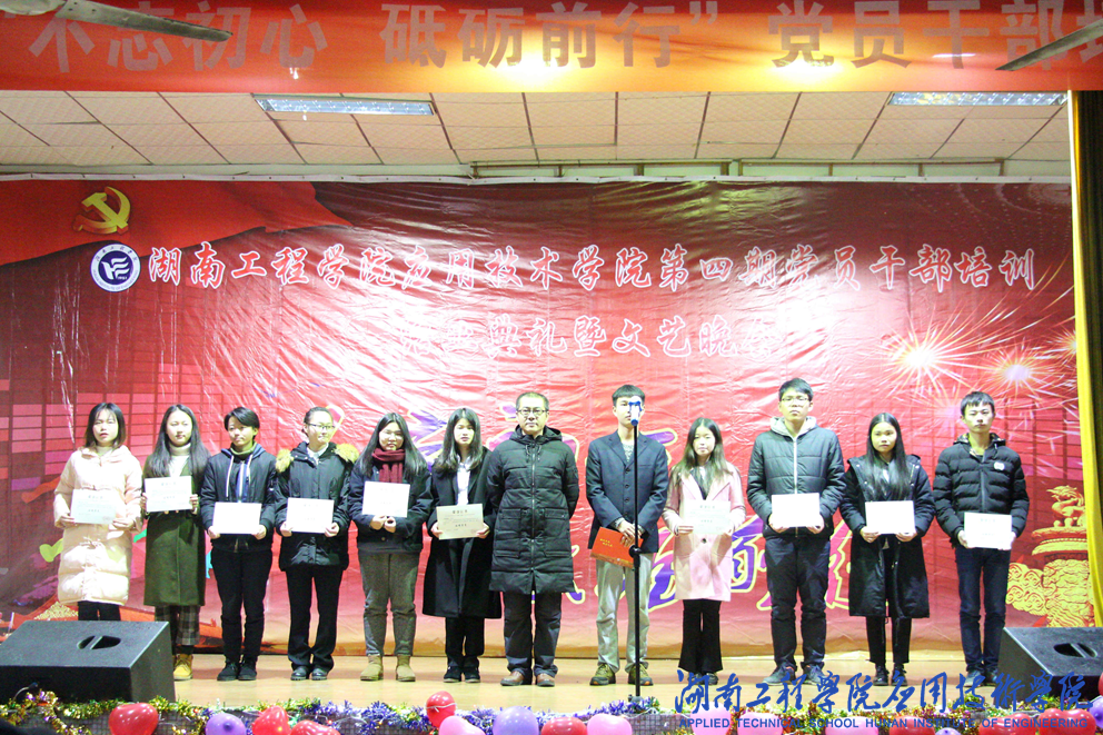 1月5日晚上6:30,威廉希尔官网在一教四楼隆重举行2018年党员干部结业典礼暨文艺晚会,出席本次活动的有党总支书记李爱国、党总支副书记徐粤宇、学生工作办公室主任刘红石、团总支书记唐冰、辅导员老师陈玄哲。本次结业典礼由徐粤宇主持。