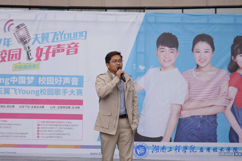 10月22日下午2:00,威廉希尔官网举办的2017“天翼飞Young校园好声音”决赛在湘潭华隆步步高四楼空中舞台拉开决战帷幕。十五位佼佼者经海选、初选、复选脱颖而出,会战决赛舞台。党总支副书记徐粤宇、团总支书记唐冰、学生工作办公室主任刘红石、教务处老师杨力舜、湖南省音协会员李存智、中国电信湘潭分公司代表王艳舞女士、赵鹏先生出席并担任决赛评委嘉宾。