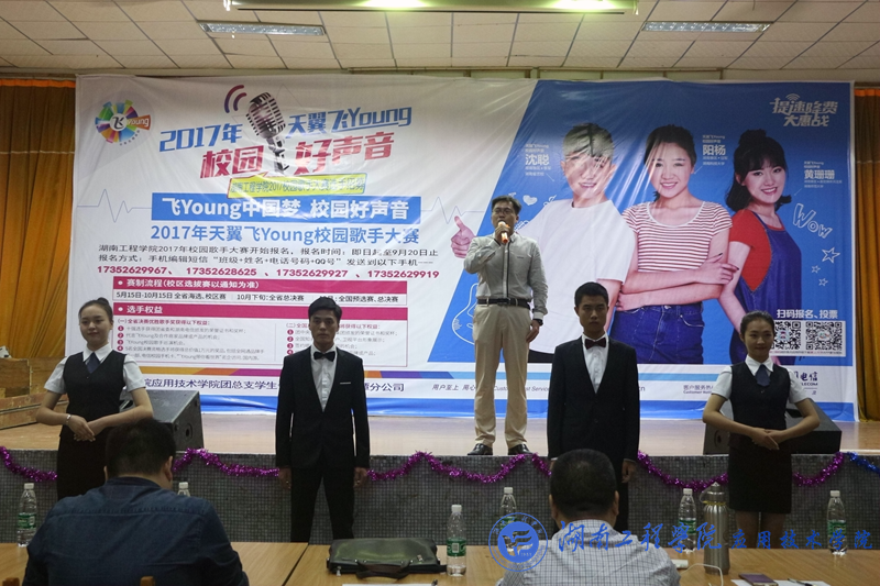 10月8日晚上7:30及10月9日中午12:30,由威廉希尔官网团总支学生会社团部、文娱部及中国电信湘潭分公司联合主办的“天翼飞Young校园好声音”复赛在威廉希尔官网第一教学楼四楼成功举办。威廉希尔官网党总支副书记徐粤宇、学生工作办公室主任刘红石、团总支书记唐冰、教务处老师杨力舜、辅导员曹时艳、蒋惠筠、班主任周舟妤栎以及电信公司代表赵鹏担任评委,本次比赛共有44名选手参赛,将选出16名选手晋级决赛。