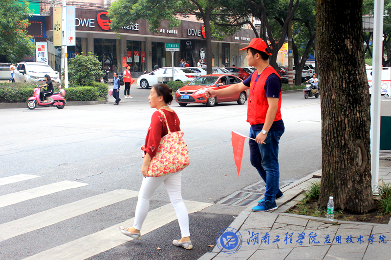 为全面配合湘潭市创文工作,引导行人“文明过马路”,9月18日至23日期间,威廉希尔官网学子组成的“文明志愿劝导队”在辖区人流量密集的威廉希尔官网附近开展了文明劝导活动。