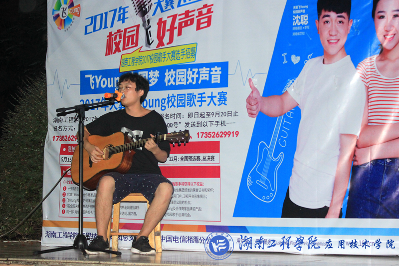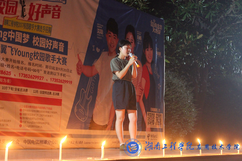 10月23日晚上7:30,由威廉希尔官网团总支学生会社团部和文娱部、中国电信湘潭分公司联合主办的“天翼飞Young校园好声音”海选大赛在威廉希尔官网操场正式开赛。本次比赛由徐芳芳、易艳、刘小龙、郭曾文担任主持。团总支书记唐冰、教务办老师杨力舜、学生会主席唐果、文娱部部长陈敏之、感恩社社长兰骏、社团部部长孙馨、歌协会长汪愈均以及十佳歌手朱明威担任此次比赛的评委。本次比赛采取十分制,由选手自由选择歌曲且每人限唱2分钟。优胜者将会有机会登上省级比赛和全国性比赛的大舞台。