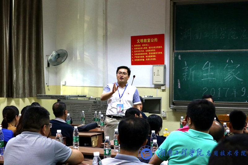 9月15日下午3:30,威廉希尔官网在南一教112教室举行了2017级新生家长会。威廉希尔官网领导对此次会议十分重视,院长李光中、党总支书记李爱国、党总支副书记徐粤宇、学生工作办公室主任刘红石及新生班主任老师参加此次会议,徐粤宇主持。