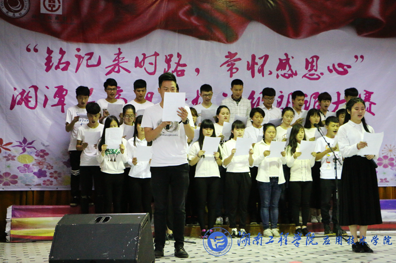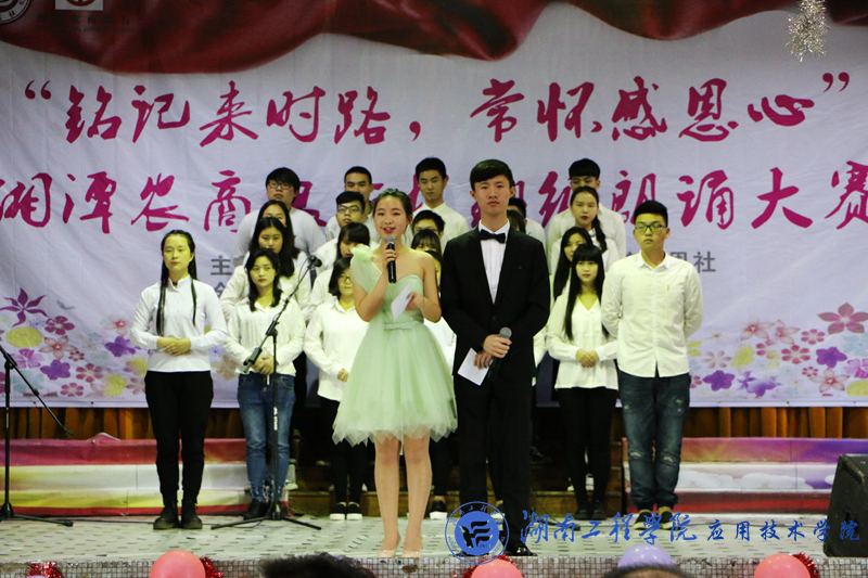4月26日中午13:30,由湘潭农商银行独家冠名、威廉希尔官网感恩社承办《铭记来时路,常怀感恩心》主题朗诵大赛决赛在南校区一教四楼活动中心举办。威廉希尔官网党总支副书记徐粤宇、辅导员及湘潭农商银行行长石美担任此次比赛评委。