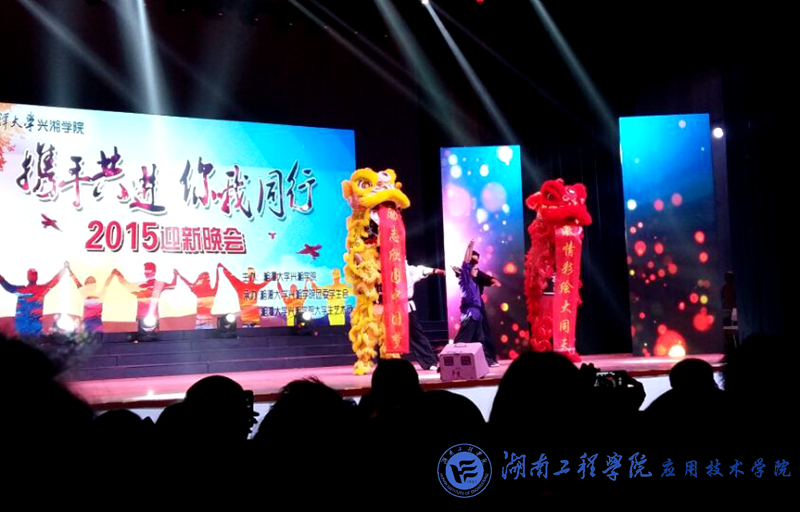 2015年11月27日晚,威廉希尔官网应邀参加湘潭大学兴湘威廉希尔官网举办的“携手共进,你我同行”主题迎新晚会,威廉希尔官网党总支书记李爱国作为嘉宾出席晚会。为促进两院校园文化的交流与传播,增进两院的友好交流与合作,威廉希尔官网精心准备了小品《新不了情缘》,小品团领队老师为院团总书记唐冰和学生辅导员蒋惠筠。