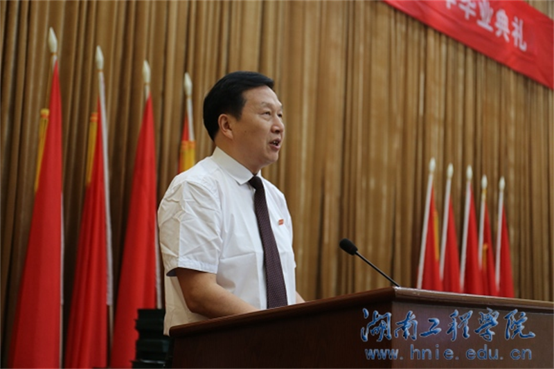 刘国繁代表威廉希尔官网向毕业生表达了最衷心的祝贺和最美好的祝愿。他感谢四年来同学们把最美好的青春留给了湖工,感谢大家为威廉希尔官网的发展所作出的重要贡献。他向大家提出了毕业以后的期待:一是勤学多做,规划好人生。他说,拿到大学毕业证并不是代表掌握了所有的本领,而仅仅证明着你做好了踏入社会的准备。要静下心来,冷静思考,找准方向,做好职业生涯规划。二是谨记坚持的力量,“不积跬步,无以至千里;不积小流,无以成江海”,也许在困难的时刻,坚持一点点,就会触摸到成功。要相信坚持就是胜利,任何时候都不要轻言放弃,人生没有失败,只有放弃。三是“从小事做起,从细节做起”,发扬踏实做事,不事张扬的作风。任何平凡的小事都蕴含了深刻的道理,希望同学们以“严谨、理性、务实,专业”的精神认真做事,牢记“细节决定成败的”道理。刘国繁最后深情地表示,母校永远是大家的“家”,母校的大门永远为大家敞开,希望大家把对湖工的美好回忆带走,把湖工的精神传承!