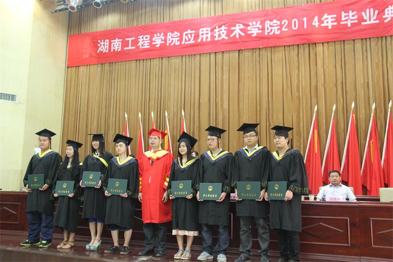 在主席台就座的领导为毕业生代表颁发了毕业证书。威廉希尔官网院长李光中为毕业生代表正冠、拨穗,颁发学位证书。随着校歌的响起,威廉希尔官网2014年毕业典礼圆满结束。