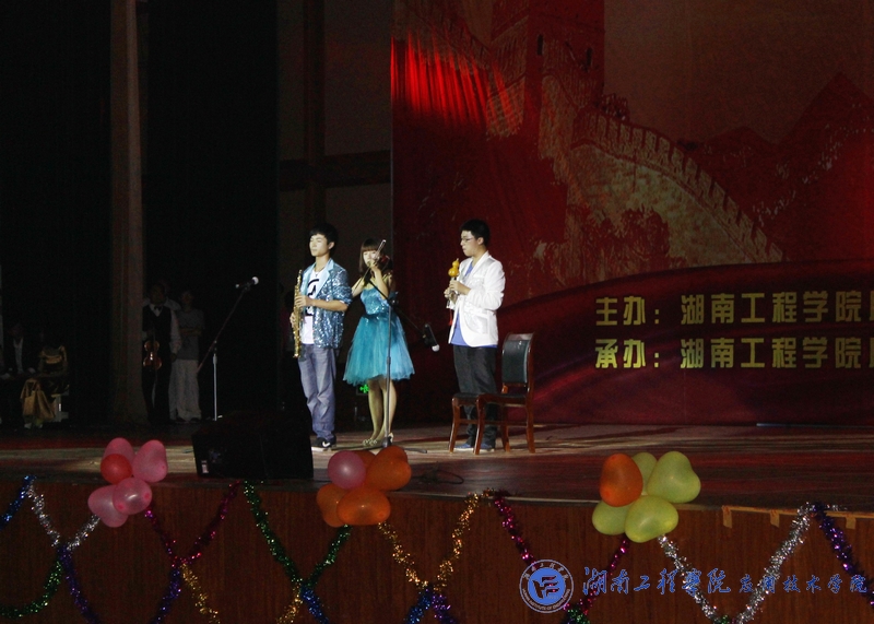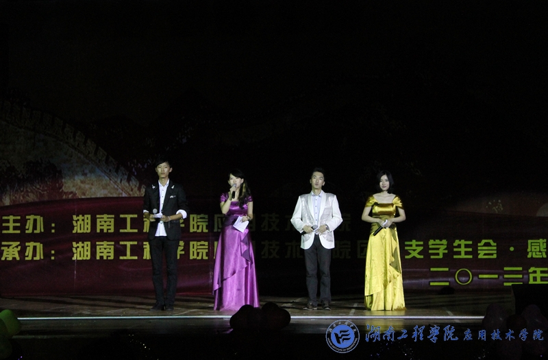 晚会一共编排了14个节目。在一段精彩的开场舞中晚会火爆开场,瞬间点燃了场下观众的热情。相声《应院三好学生》,话剧《挂科,你好》以诙谐幽默的语言和出色的表演赢得了观众热烈的掌声;乐器合奏《乐动中西》带领着大家领略到中西音乐相互交融的魅力,小提琴独奏更是成为了全场的亮点,悠扬婉转的旋律,让师生们深深的陶醉其中;健美操队带来的《啦啦操》、舞蹈队的芭蕾舞《冰与火》、极具创新意味的《英雄联盟》等节目让同学们赞叹不绝。歌曲《感恩的心》和《致青春》带领大家回忆美好大学生活中的点点滴滴,引发了同学们强烈的共鸣,回望在母校度过的青春岁月,心中满是别离的不舍;最后登场的《湖工最强音》将晚会的气氛推向了新的高潮,威廉希尔官网校园歌手大赛冠军邓淑君的歌声赢得了同学们的连连叫好。