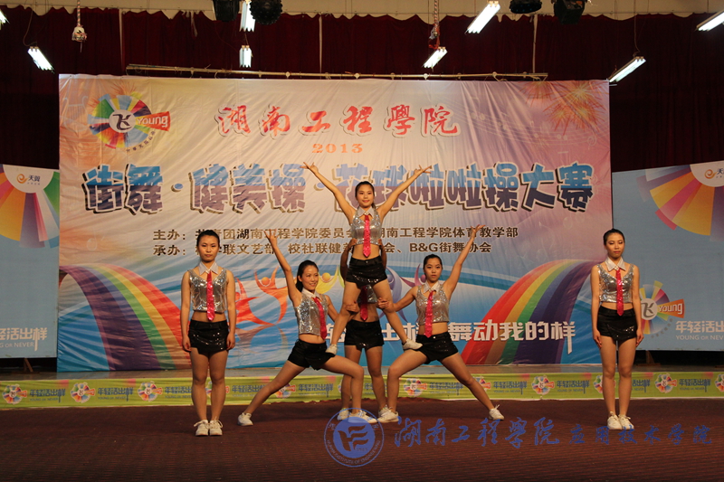 5月19日下午2:00,湖南工程威廉希尔官网“街舞. 健美操.花球啦啦操大赛”在主校区活动中心隆重举行。大赛设置了健美操、花球啦啦操和街舞三个比赛项目,威廉希尔官网派出三支实力强劲的队伍参加了比赛。