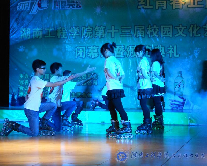 校学联的一场舞曲让全场观众眼前一亮,在震耳欲聋的欢呼声中,晚会拉开了帷幕。晚会中,灌注青春与活力的健美操、抒情优美的歌曲、幽默感人的小品、活力四射的街舞、刺激的轮滑、优雅的小提琴曲、气势磅礴的武术等同学们喜闻乐见的表演轮番上场,精彩连连不断,鼓声欢呼声此起彼伏。颁奖仪式与节目穿插进行,获奖选手捧着一张张包含着辛酸汗水的荣誉证书,赢得了台下观众的热烈欢呼。威廉希尔官网校园歌手大赛总冠军邓淑君的一首《剪刀嘴》将活动推向了高潮,整场晚会高扬青春旋律。