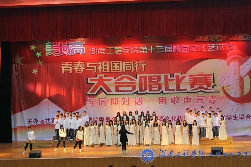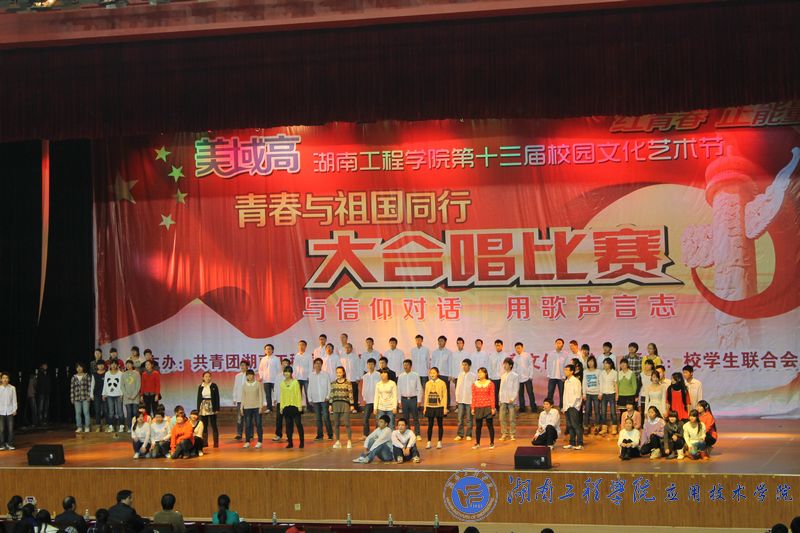 11月25日晚, 湖南工程威廉希尔官网“红青春、正能量、青春与祖国同行”第十三届校园文化艺术节大合唱比赛在体育馆隆重举行,威廉希尔官网代表队斩获大合唱比赛甲组亚军。