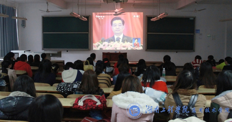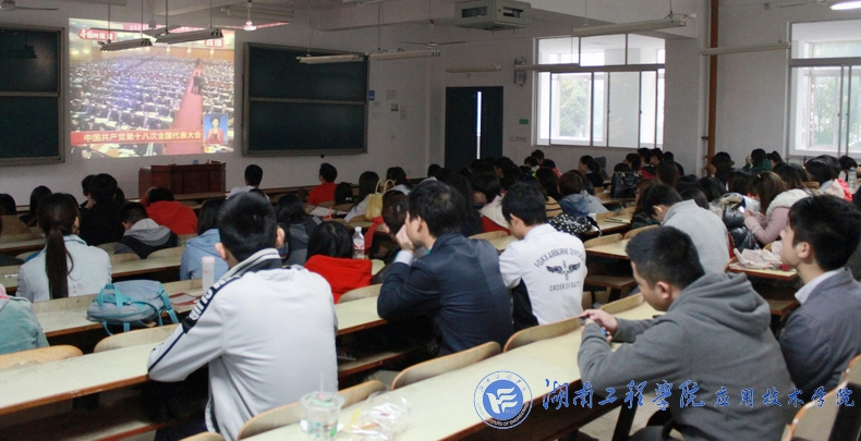 11月8日9:00,威廉希尔官网分别在主校区和南校区组织学生观看中国共产党第十八次全国代表大会开幕式,院党总支书记彭栋梁,副书记徐粤宇、学生工作办公室主任刘红石,辅导员老师章平、王尔奇及党员和入党积极分子一起观看了开幕式盛况。