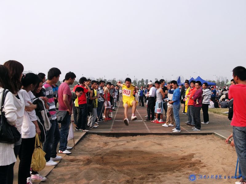 在这秋高气爽的十月里,我们迎着秋日的阳光,伴随着收获的季节,迎来了欢快精彩的校运动会。继上午开幕式后,各项目都如火如荼的进行着。下午2:00男子跳远、女子跳高、女子标枪项目预决赛正式开始。