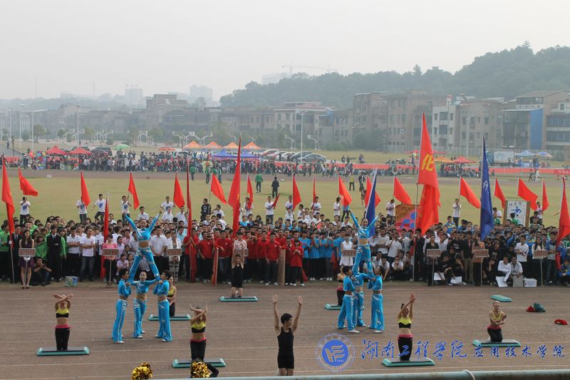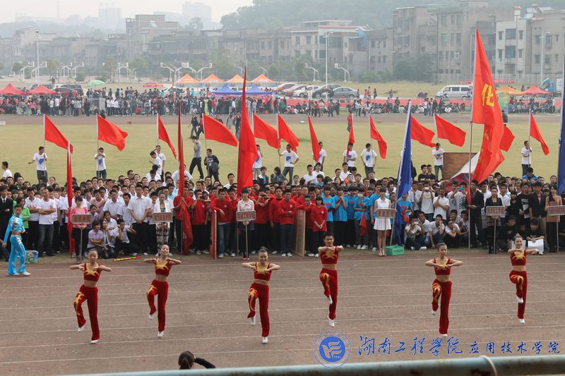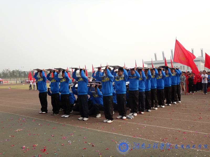 开幕式在庄严的国歌声中拉开帷幕。体育馆现场彩旗飘飘,欢声阵阵,各院学生都在积极的期待着运动会的召开。伴随着振奋人心的《运动员进行曲》,来自各威廉希尔官网的14支方阵代表队犹如钢铁之师从主席台前经过。威廉希尔官网载着去年冠军之师的荣耀,重新踏上了战场。伴随着气势磅礴的“至尊为谁,唯吾应院,应院威武”的响亮口号,威廉希尔官网代表队身着蓝色运动服踏着坚定整齐的步伐、高呼“山中猛虎,水中蛟龙,湖工应院,卧虎藏龙”的口号闪亮出场。随着神曲《江南style》的响起,威廉希尔官网拉拉队在运动场上跳动的热舞,顿时吸引了观众们的目光,动感的节奏,幽默的舞姿,充分体现了威廉希尔官网学子的无限活力。然后,威廉希尔官网50名运动员高举比赛项目的图标列成矩阵,并不断地变换,默契地深蹲、起立排列成“数字倒计时”,向大家展示威廉希尔官网的凝聚力以及同学们对体育的无比热爱,博得了现场观众雷鸣般的掌声与欢呼声。这是一支被誉为冠军之师,龙虎之队的队伍,他们又一次给大家带来了精彩与震撼。