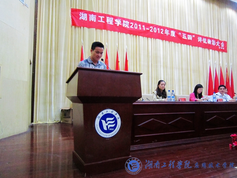 5月23日晚上,主校区图书馆第一报告厅举行“湖南工程威廉希尔官网2011—2012年度五四评优表彰大会”。威廉希尔官网团总支荣获“五四红旗团总支”光荣称号,工程管理0981班团支部等3个团支部获得“五四红旗团支部”光荣称号,200多名同学受到表彰。