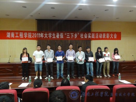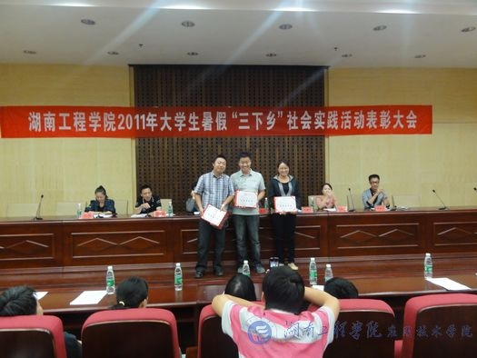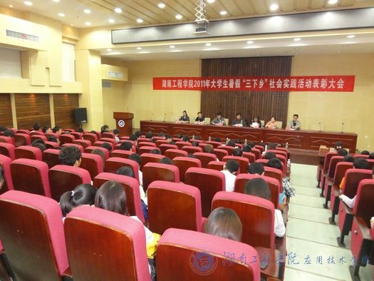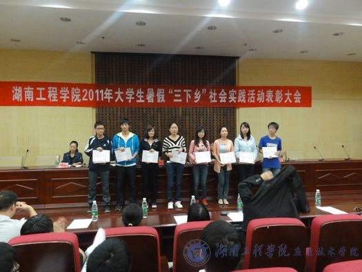 大会在庄严的国歌声中正式开始。首先,校团委张小刚书记对2011年暑假“三下乡”社会实践活动做了全面总结。他说:“‘三下乡’实践活动是推动大学生素质拓展计划的重要举措。威廉希尔官网根据上级文件精神,组织了此次实践活动。从下发通知,组织安排到面试、筛选和培训,所有过程都进行得有条不紊。此次‘三下乡’主题突出、目的明确、形式多样、特色鲜明,做得非常好。”接着,毛晓华副处长宣读了2011年湖南工程威廉希尔官网“三下乡”社会实践总结表彰文件,“三下乡”社会实践中涌现出的一批优秀组织院部、优秀指导老师、先进个人以及优秀社会调研人员被表彰。最后,李希恒副校长发表了重要讲话。他对“三下乡”实践活动所交回的答卷给予了肯定,对获奖人员和威廉希尔官网表示了热烈祝贺。他希望同学们在今后的社会实践中,努力探索新方向、新基地,进一步加强、促进社会实践活动的开展,为建设“四化两型”社会做贡献。
