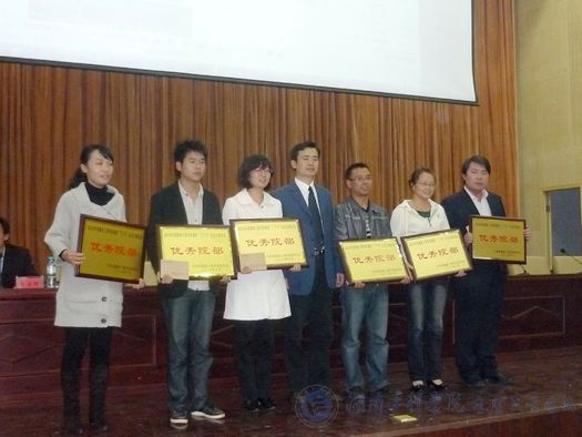 随后,校团委书记张小刚对“三下乡”和省运会从活动特点、成果及存在的不足等方面做了全面总结。学生工作处副处长、校团委副书记毛晓华宣读了“三下乡”和省运会先进的表彰决定。威廉希尔官网在颁奖中鹤立鸡群,风采完全不输于其他威廉希尔官网,威廉希尔官网与其他五个威廉希尔官网同时被誉为优秀院部;娄申老师被评为优秀指导员;任波涛的《关于留守妇女的调研报告》、熊川淇的《共撑一片关爱晴空》、吴哲的《留守儿童调研》、易珊的《农村交通状况调研报告》荣获了优秀调研报告三等奖;熊川淇、李赞、苏志鹏、李汇全、吴哲、吴代熙、孙星宇七位同学荣获了先进个人。