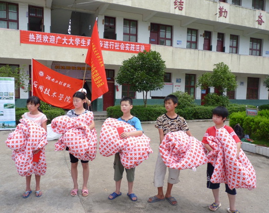 此次活动,娄底市红十字会捐款1万元,棉被100床。一天的爱心活动折射出威廉希尔官网“三下乡”社会实践志愿服务团扶危济困、助人为乐、团结合作的精神风貌,相信威廉希尔官网在今后的活动中,将“奉献、友爱、互助、进步”的志愿服务精神和“人道、博爱、奉献”的红十字精神发扬光大,在以后的日子里,我们将继续怀揣真爱,一路同行!(记者:熊川淇、李赞、任波涛、谢安淇;摄影:李赞、苏志鹏)