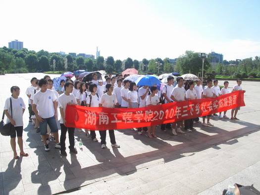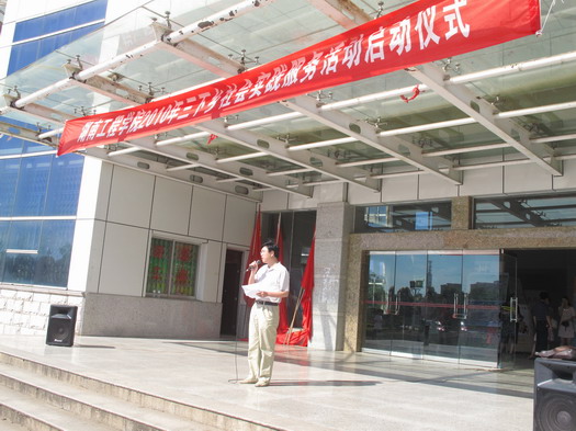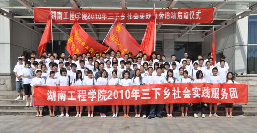 7月18日9:00,湖南工程威廉希尔官网2010年“三下乡”社会实践服务活动启动仪式在主校区(新)教学楼前坪隆重举行,威廉希尔官网副校长宁立伟、校团委书记张小刚及指导老师,全校5支社会实践服务团队110余名志愿者参加了启动仪式。