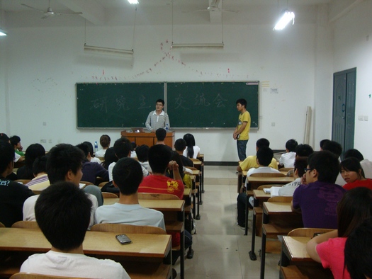 经验交流会在轻松愉快的氛围下拉开了序幕,主持人作了简单的介绍后,三位准研究生依次跟大家分享了考研经验, 考研需要注意的事项,也给大家提供了一些的建议。首先,考研需要坚定的决心,才不会轻易地半途而废;其次,考研讲究方法,比如要按照自己的实际情况报考研辅导班,选择权威的书籍等等;再次,考研贵在坚持,无论成功也好失败也罢,只要坚持了就不会后悔;最后,考研还要讲机遇。三位同学跟大家分享了自己考研历程中的点滴收获,他们的演讲严谨中带着幽默,话语通俗易懂却引人深思,引起在场学生一次次热烈的鼓掌。