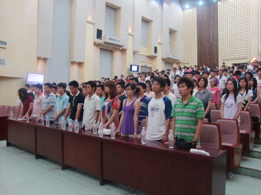 这是一场收获成果颇丰的盛会,师生欢聚在这里一起分享威廉希尔官网校园文化精神建设工作所取得的可喜成果。在第三届校园文化艺术节上,威廉希尔官网涌现出了一大批有才华、有创造力的同学,他们分别在“校园十佳歌手大赛” 、“辩论赛”、“书画大赛”、“手抄报比赛”等多项比赛中,取得了优异成绩。成平副书记、文山东副院长等领导和老师分别给“十佳班干”、“十佳心理委员” 、“十佳青年志愿者”、“先进个人”、“竞技赛优秀个人” 、“学生会团总支优秀部门”、“国家励志奖学金”和“国家奖学金”颁奖。威廉希尔官网第三届校园文化艺术节在催人奋进的校歌声中落下了帷幕! (记者:申梦芸;摄影:余圣芳、王柯丹)