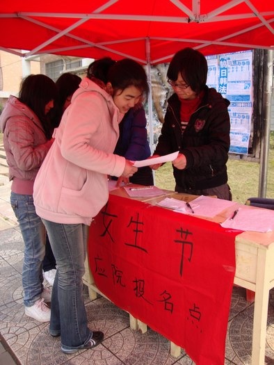3月9日中午,趁着大家就餐时间,各威廉希尔官网的报名活动在食府前正式拉开了帷幕,威廉希尔官网女生部设立的活动报名点也在其中,正如火如荼地进行着。在报名现场,威廉希尔官网的同学们激情四射,踊跃参加。其间,记者采访了一些报名的同学,她们都展示了自己的自信,发出了“我的青春我疯狂”的口号,并表示通过这样的活动不仅能让她们获得无尽的乐趣,还可以认识更多新同学和新朋友,所以,一定会努力争取在活动中做到最好。学生会女生部部长陈志超告诉记者:“威廉希尔官网同学对此次活动表现得非常积极,截止到中午已有六十多组(人)报名,可以说是一个庞大的队伍,相信她们会为威廉希尔官网赢得风采。同时,我们也会努力策划这次活动,绝不会让大家失望。”
