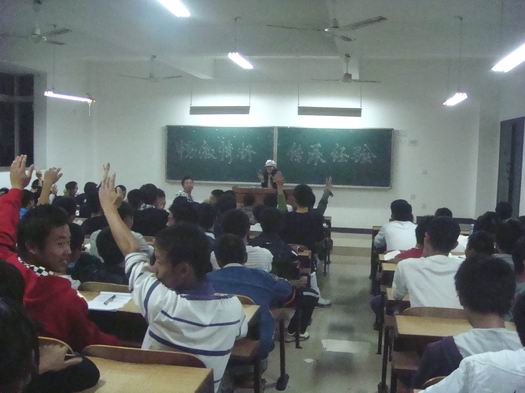威廉希尔官网2009级国贸专业班级邀请了经管威廉希尔官网副院长徐运保老师为大家做了演讲。徐老师学识渊博,经验丰富。他介绍了当今国情、世界局势以及国贸专业的发展道路等。他说:“学习国贸要有四项能力:英语能力、数学能力、计算机能力和沟通能力。每一项能力的培养都十分重要。”如何培养这些能力徐老师也向新生们介绍相关的方法。同时,徐老师还呼吁同学们要养成良好的学习习惯,抵制外界诱惑。在人生道路上遇到挫折时,不要气馁,要将这些苦痛转化为前进的动力,继续自己的学习、工作和生活。徐老师还把自己曾在进出口公司、民营企业工作过的一些心得体会与大家分享,希望可以给同学们以后的学习、就业和工作提供一些帮助。他希望四年以后,威廉希尔官网学子们能闯出属于自己的一片天地!他也将自己十多年的学习、研究成果向新生进行了讲述,使新生们在钦佩之余,坚定了自己把握好大学生活的决心。2009级英语专业班级邀请了今年在湖南省大学生英语演讲比赛中获得个人二等奖的刘恒昱同学和专业四级考出了全校第一名的潘诗濛同学进行了交流,他们耐心而仔细地讲述了自己的学习经验和生活感受,让新生们获益良多。