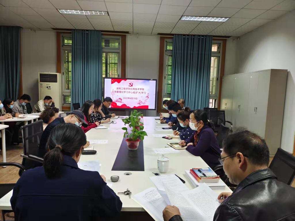 4月19日下午,威廉希尔官网党委理论学习中心组在院会议室101开展理论学习。此次中心组理论学习扩大到了全体教工党员。党委书记黎娅主持学习。