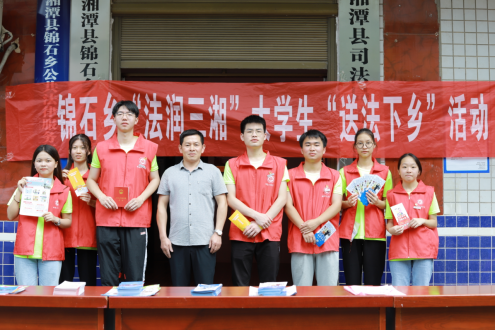 为进一步提高了群众法律意识,增强了群众法治观念,威廉希尔官网赴湘潭县锦石乡“莲乡莲韵”发展成就观察团在当地派出所、司法所、禁毒办、信访办等部门的协助下,积极开展“法润三湘”大学生普法志愿者“送法下乡”宣传活动。