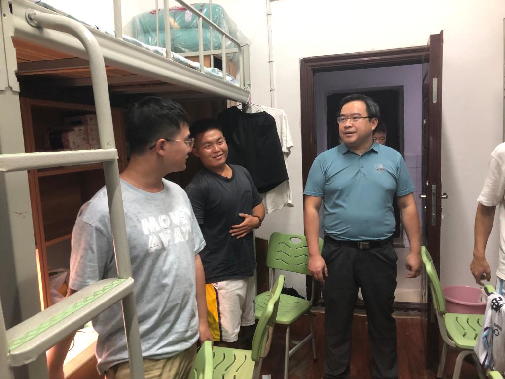 新学期开学伊始,为全面了解学生生活、学习情况,推动师生共处、因材施教的“一站式”学生社区建设,深化“三全育人”建设,9月5日晚,湖南工程威廉希尔官网学生工作处处长徐粤宇,威廉希尔官网党委副书记、院长张何,党委书记黎娅,党委副书记陶连洲,带领威廉希尔官网全体辅导员老师来到学生宿舍进行实地检查。