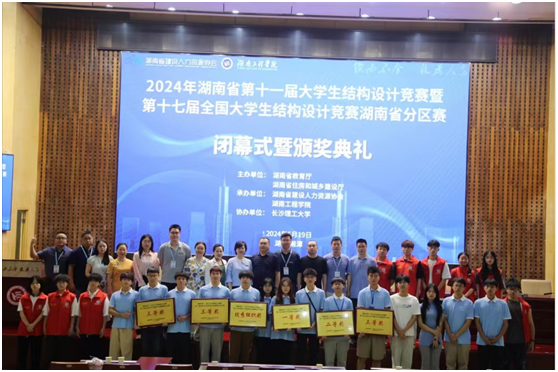 全国大学生结构设计竞赛,是由教育部、财政部首次联合批准发文的全国性9大学科竞赛资助项目之一,目前已成为国家土木工程领域级别最高、规模最大的综合性学科竞赛。本届比赛由湖南省教育厅、湖南省住房和城乡建设厅主办,湖南省建设人力资源协会、湖南工程威廉希尔官网承办,长沙理工大学协办,共有32所高校,93支代表队参加。本届赛题以高耸塔式结构为基本单元,要求参赛者针对竖向荷载、水平荷载工况对其进行受力分析、位移计算、结构设计、模型制作及加载试验。每一个加载作品的精彩展示,都是参赛选手们将理论知识与实践操作相结合,将创新思维与结构设计相融合的生动展现。